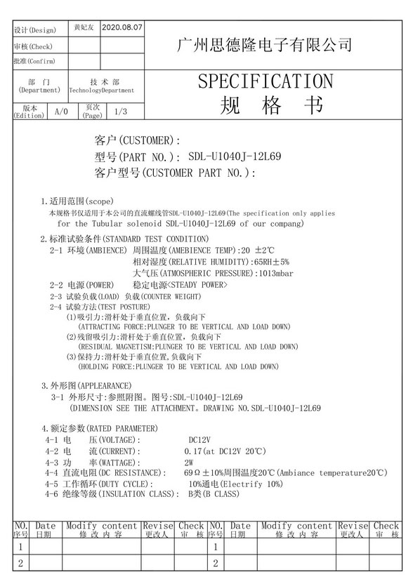 | 電壓: | 12 VDC | 行程: | 8mm | 電阻: | 69Ω | 功率: | 2W |