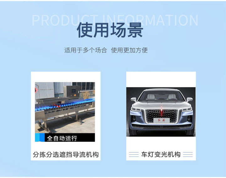 應用:分揀分選遮擋導流機構、車燈變光機構